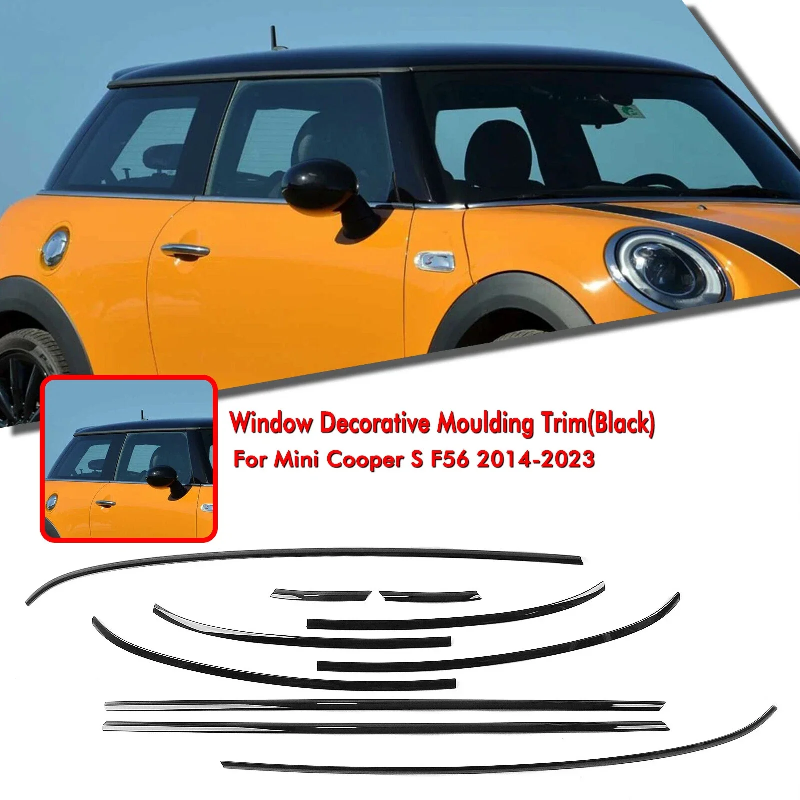Zwarte trimlijst set voor de mini f56 3 deurs hoogglans zwart
